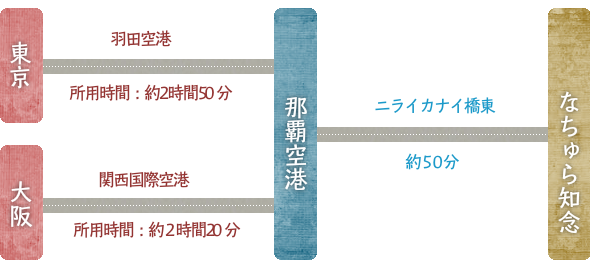 国道331号を南下して約10分の豊見城・名嘉地ICから豊見城東道路に入り(南風原南ICで降りる)、県道82号~県道86号~国道331号へと進むルートが速い。途中、垣花交差点を左折して約4キロ走るとニライ橋カナイ橋だ。国道331号との合流点、吉冨交差点まで続く1キロほどの曲がりくねった橋は沖縄屈指のビューポイント。吉冨交差点を左折すると800メートルほどで斎場御嶽への入口があり向かいに久高そば屋さんを海側に坂を下ります。
