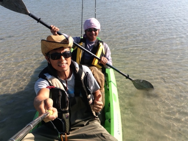 お子様親子 カップルなど息を合わせて漕ぐフィッシングカヤックツアー